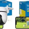 A versatile outdoor security camera with 2K QHD (4MP) resolution for sharp, detailed video day and night. Its 360° pan and tilt rotation, plus motion tracking, ensures complete coverage of your property. Features include weather-resistant (IP66) design, color night vision, two-way audio, and smart detection for people, vehicles, and pets. Works with Alexa and Google Assistant for voice control and stores footage locally via microSD or securely in the cloud.